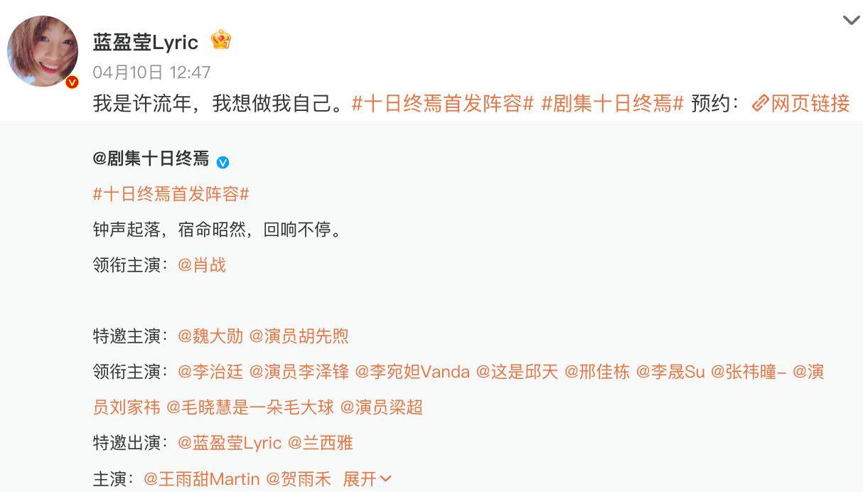而此时,咱们再看特邀出演副角许流年的蓝盈莹,她大约是正在圈内浮重了众年后,心态也产生了转折。